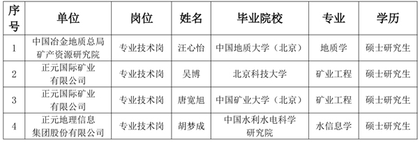 根据工作需要,现将中国冶金地质总局在京单位拟接收2025年度应届毕业生有关情况公示如下: