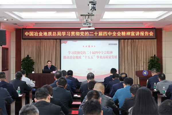潘树仁以《学习贯彻党的二十届四中全会精神 推动冶金地质“十五五”事业高质量发展》为题,从深刻领会四中全会精神实质,准确把握“十五五”发展方向;精准研判国资央企形势任务,清醒认识“十五五”时期机遇挑战;科学谋划地矿产业发展路径,精心绘制“十五五”宏伟蓝图等三个方面,紧密结合冶金地质实际,深入系统宣讲了党的二十届四中全会精神。